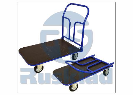 Платформенная тележка ТПСР-ФЛ уникальна тем что, в ней запатентован механизм трансформации, который позволяет значительно уменьшить размер тележки в сложенном состоянии, путем складывания ручки.