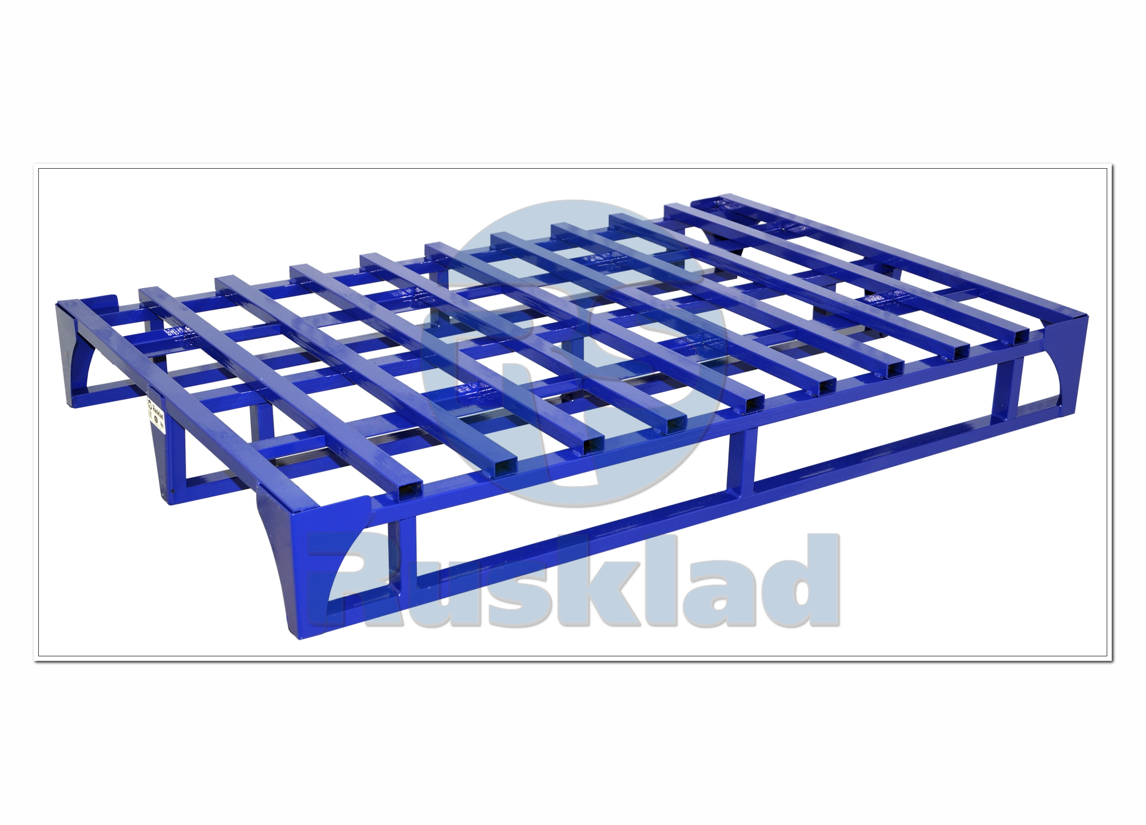 Каркасный металлический поддон.Серийно выпускается двух типоразмеров, по стандартам «Евро» и «Фин». Расчетная грузоподъемность поддона 1500 кг распределенной нагрузки.